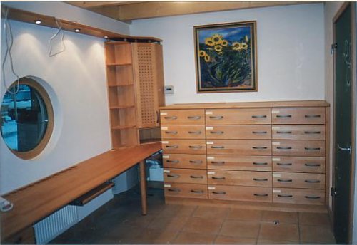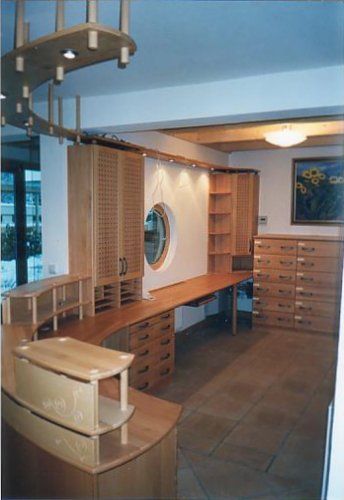 Auch im Praxisbereich ist die Verwendung von Massivholz sehr sinnvoll. Es durchbricht die starre kühle Linie der Kunststoffober-flächen und vermittelt den Patienten ein Gefühl von Wohlbehagen. |